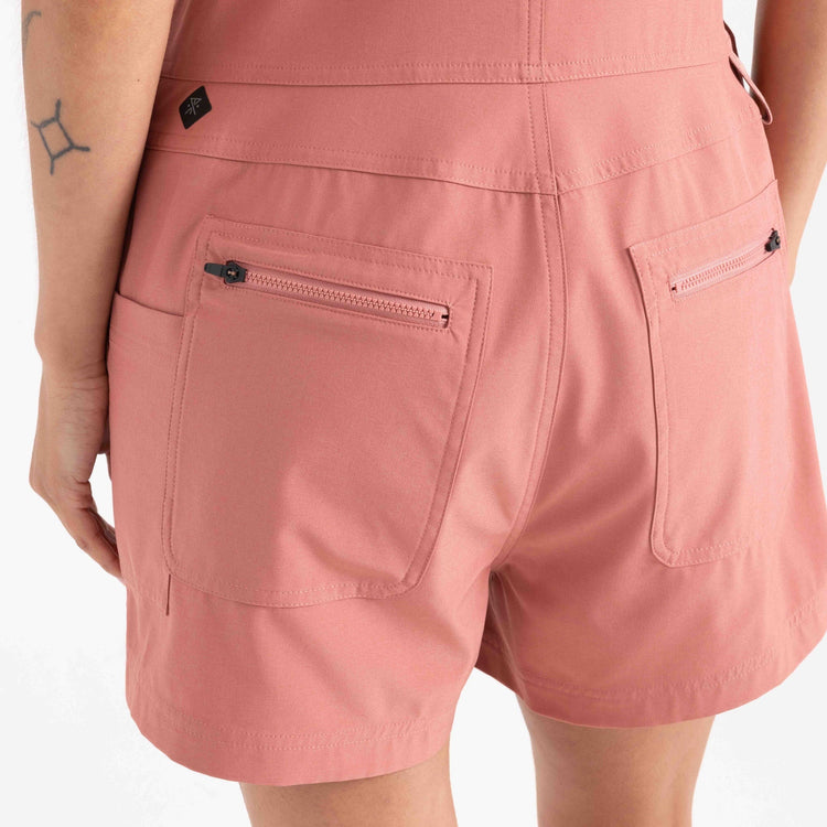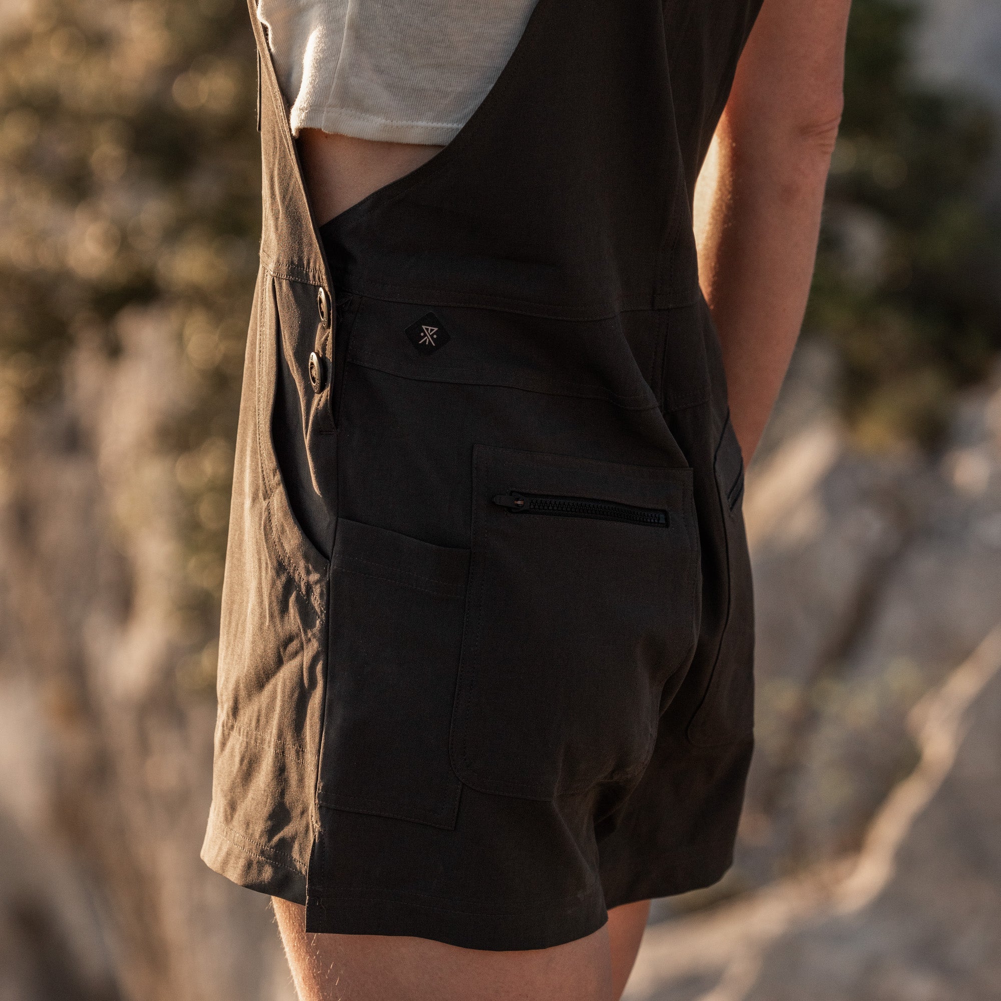 This relaxed fit, hybrid, and quick-dry romper is our tech savy side-kick for an action-packed summer. Featuring dolman short sleeves and custom embroidery inspired by the eternal island of Sardinia, this romper transports us to the limestone mountains off the Italian coastline with ease and effortless style. Featuring back snap pockets and mesh easy drain gussets to match, take this romper from summit to sea.